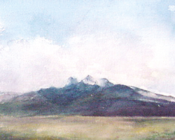 The much acclaimed mountain scenery of Scotland is featured in compositions such as Highland House by the Loch and Leaving Loch Nevis in Inverness-shire complemented by Bun Abhiann Eadarra, Isle of Harris; The Cuillins and Sheltered Cove,Isle of Skye and Glen Sannox, Isle of Arran.